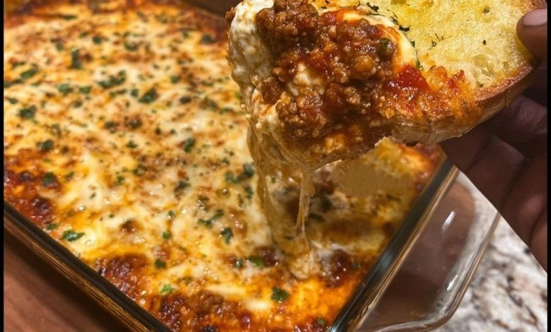 All the comfort of classic lasagna, transformed into a warm, scoopable dip. This layered dish brings together savory meat sauce, creamy cheeses, and bubbling mozzarella served hot with toasted garlic bread for dipping. It’s everything you love about lasagna, minus the noodles and fuss.