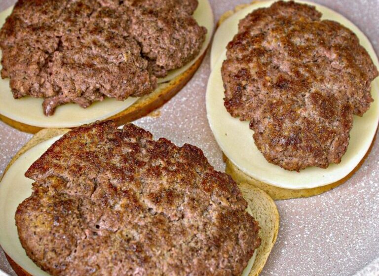 1. Form the meat into 3 flattened patties with roughly the same shape as your bread slices.
