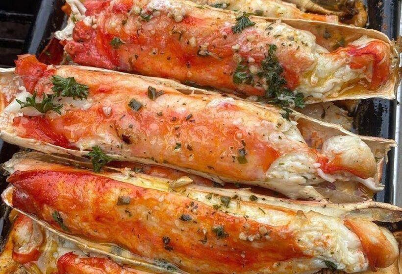 My family’s favorite dish we mostly prepare during crabs season. These baked crab legs in butter sauce provide very tender and juicy meat.