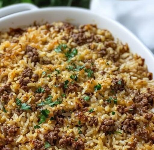 Looking for a hearty, comforting meal that’s quick and easy to prepare? This Cheesy Hamburger and Rice Bake is the perfect answer! Combining ground beef, tender rice, creamy mushroom soup, diced tomatoes with green chilies, and loads of gooey cheddar cheese, this dish is sure to be a family favorite.