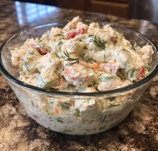 This is one of the fastest salads to make but it does not look or taste like you just threw it together! I love seafood salad but my husband love, loves it. When I made this recipe, he ate nearly all of it and then asked if I would make more. He is lucky that it is easy to make!