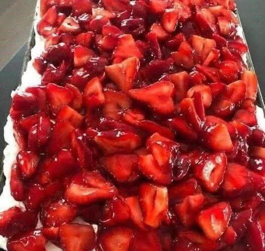 4. Top cream cheese mixture with another layer of strawberries.