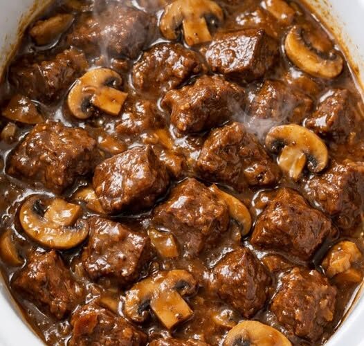 - Rest & Serve: Turn the slow cooker to WARM and let the beef tips sit for 10 to 15 minutes before serving so the gravy thickens slightly. Serve hot, spooning generous amounts of beef and mushroom gravy over mashed potatoes, noodles, or rice.
