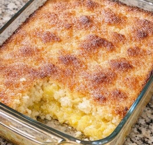 2. Mix cake mix with the full can of pineapple (do not drain).